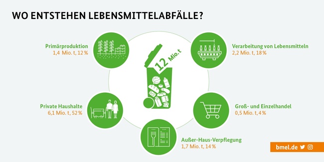 In Deutschland beschloss das Bundeskabinett im Februar 2019 die „Nationale Strategie zur Reduzierung der Lebensmittelverschwendung“. Erst seitdem werden Methoden für eine bundeseinheitliche Erfassung von Lebensmittelabfällen erarbeitet. Betrachtet werden dabei folgende Bereiche: Primärproduktion, Verarbeitung, Handel, Außer-Haus-Verpflegung und private Haushalte. Daraus ergibt sich, dass in Deutschland jährlich rund 12 Millionen Tonnen Lebensmittelabfälle entstehen. Mehr als die Hälfte davon, rund sieben Millionen Tonnen, wären vermeidbar.
