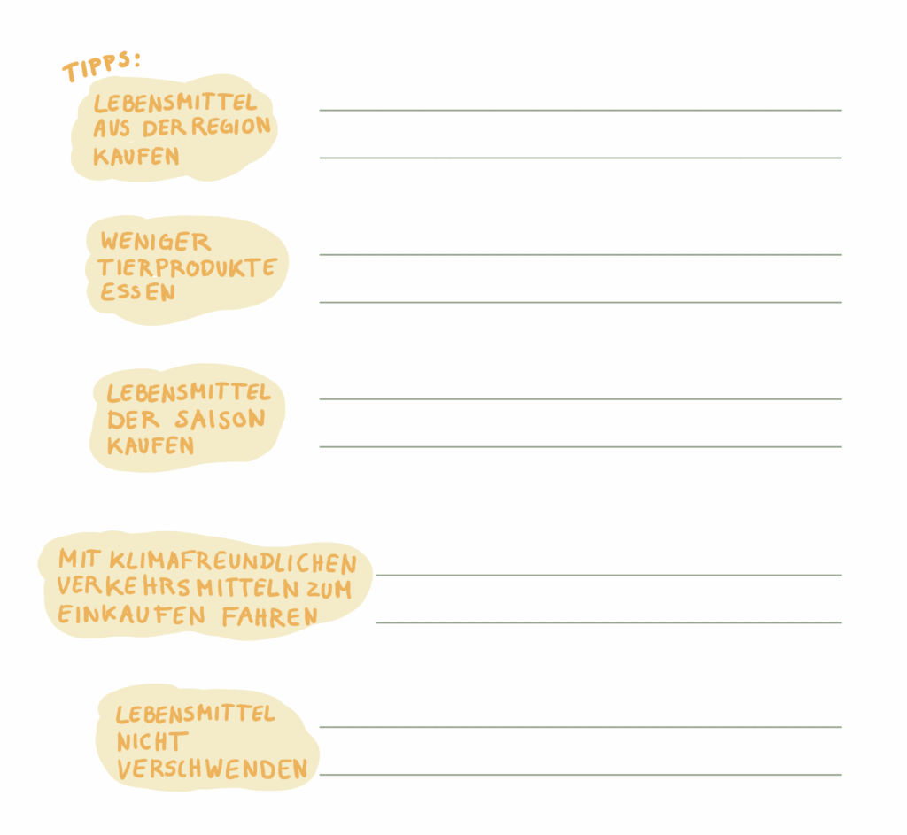Auf dem Arbeitsblatt findet ihr verschiedene Tipps. Überlegt, wie die Tipps helfen Treibhausgase zu verhindern oder einzusparen. Notiert eure Antworten!