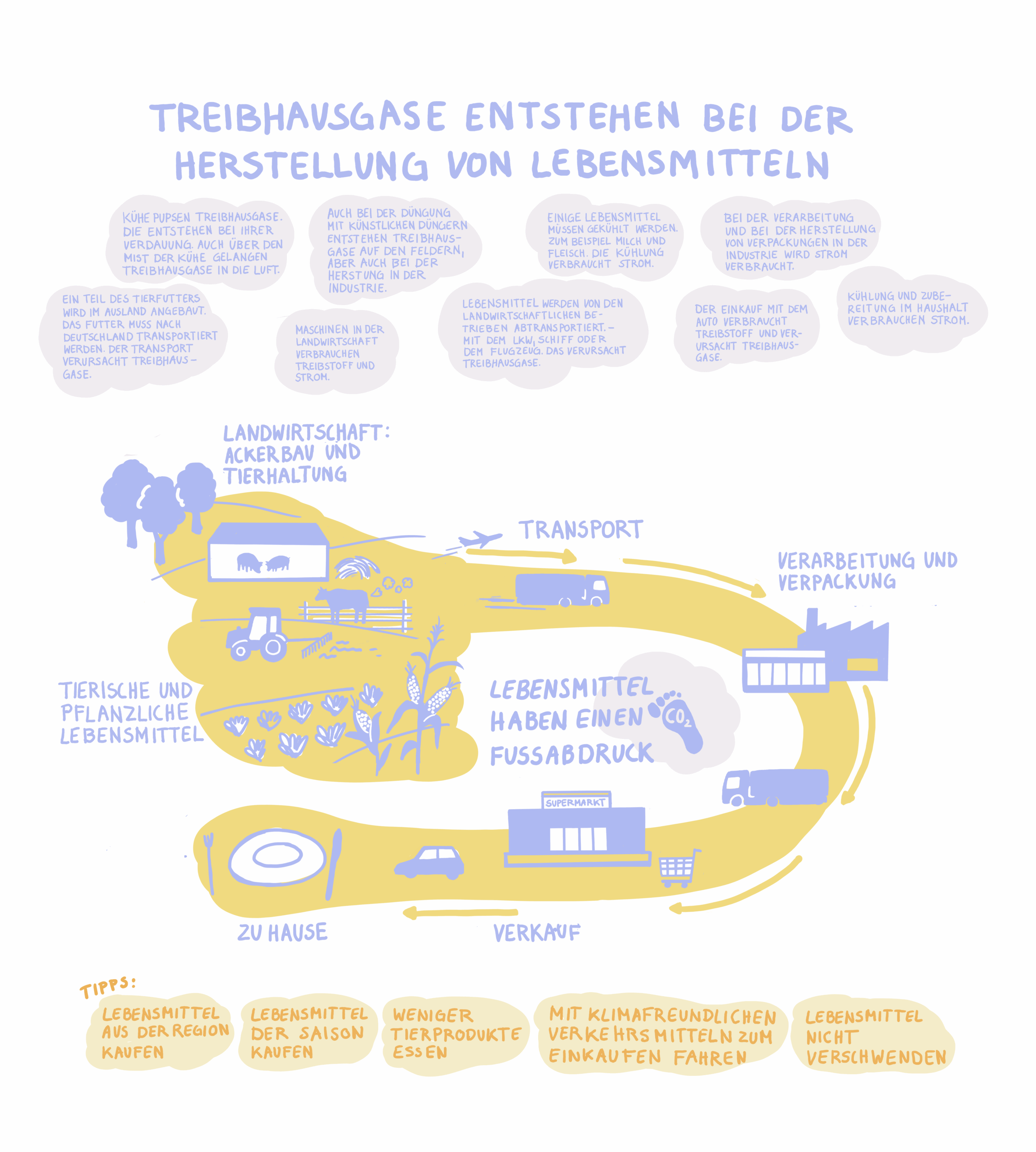 Gitte Hellwig, mycelia gGmbH, Illustration – Weg von Lebensmitteln aus der Landwirtschaft bis auf den Teller, CC BY-SA 4.0